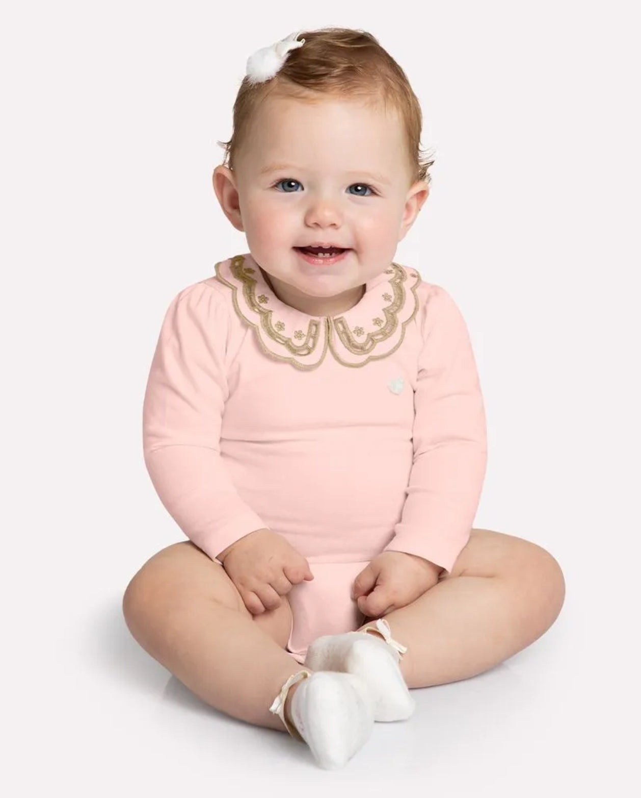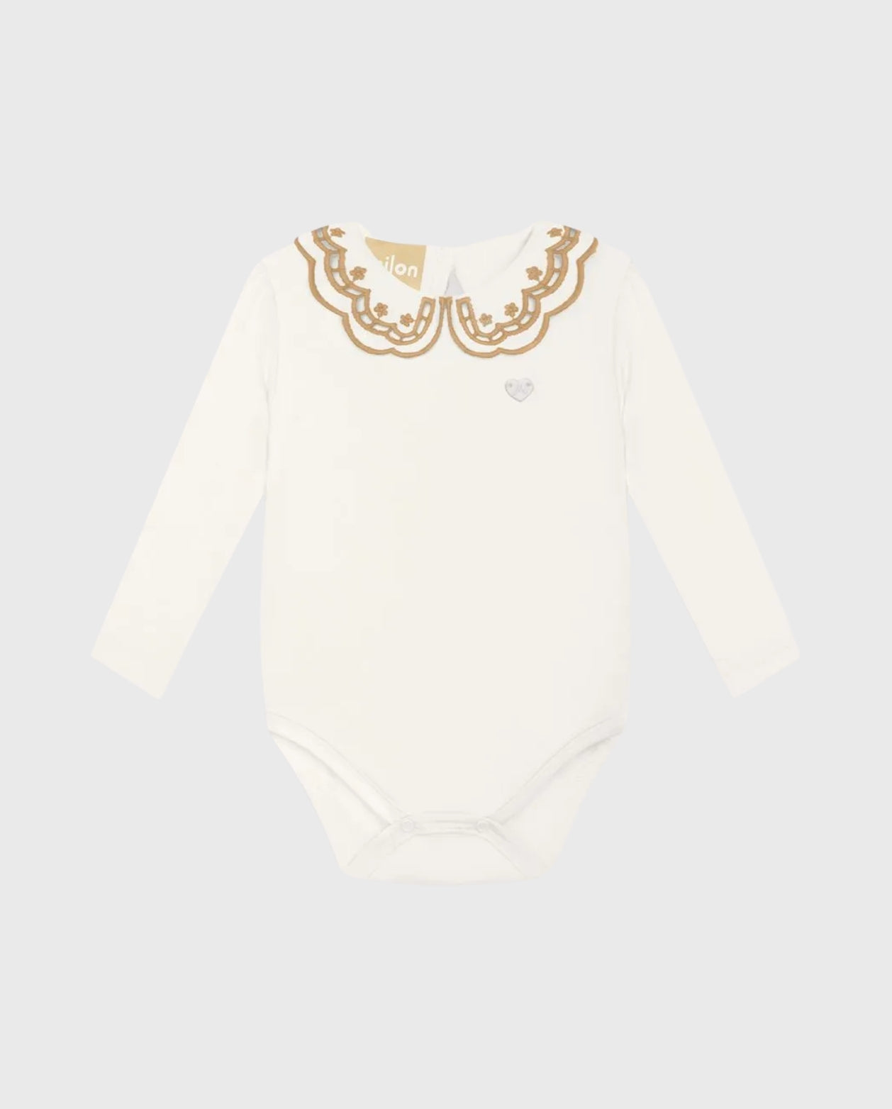 Delicado y encantador, este body manga larga de Milon es una prenda atemporal ideal para crear looks elegantes desde los primeros meses. Su diseño clásico con cuello bordado y detalles finos lo convierten en una opción perfecta para ocasiones especiales. ¡Agrégalo al carrito y viste a tu bebé con elegancia desde el primer día!