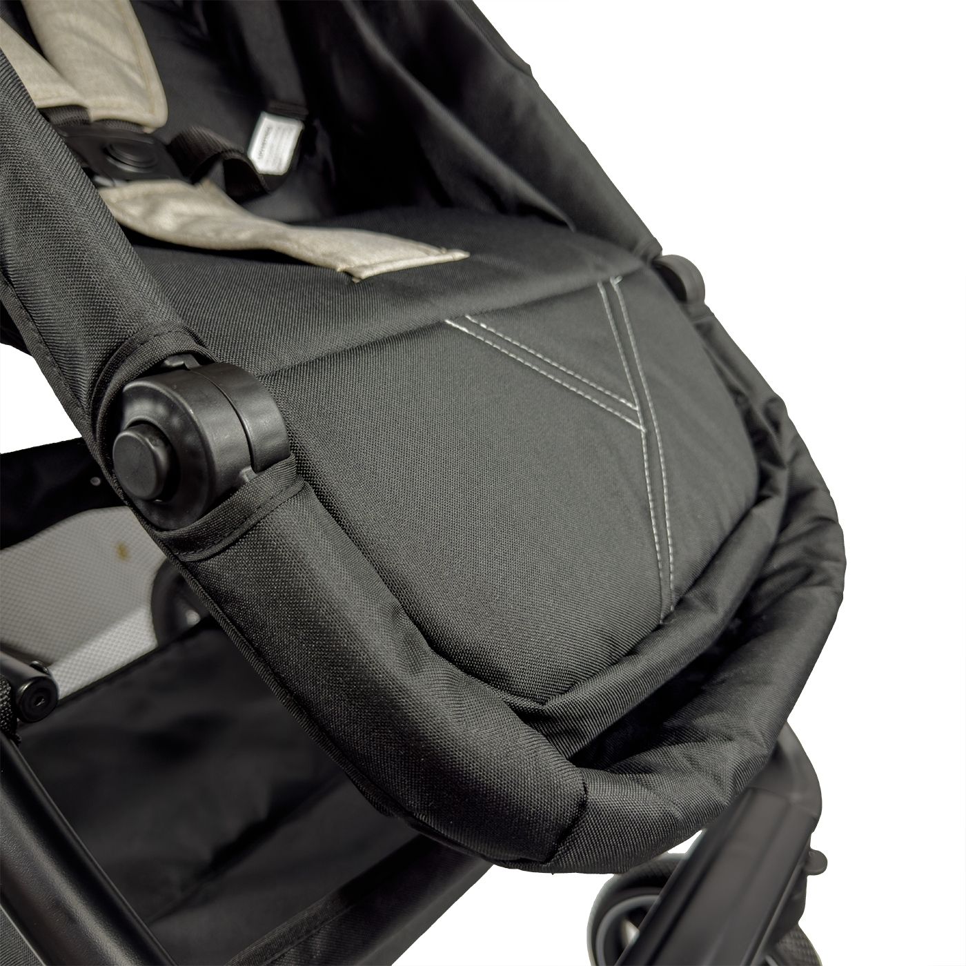Cuenta con canopy extensible con visor, cinturón de seguridad de 5 puntos y detalles funcionales como mango en ecocuero, portavasos y bolsillo trasero, pensados para brindar una experiencia cómoda tanto para el bebé como para los padres.