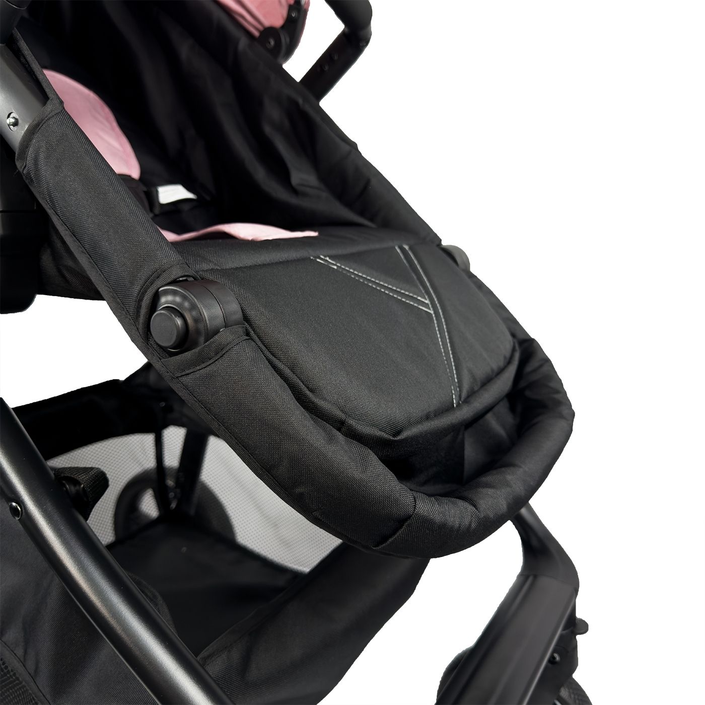 Cuenta con canopy extensible con visor, cinturón de seguridad de 5 puntos y detalles funcionales como mango en ecocuero, portavasos y bolsillo trasero, pensados para brindar una experiencia cómoda tanto para el bebé como para los padres.