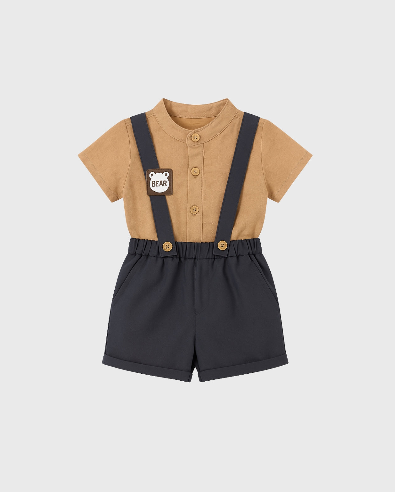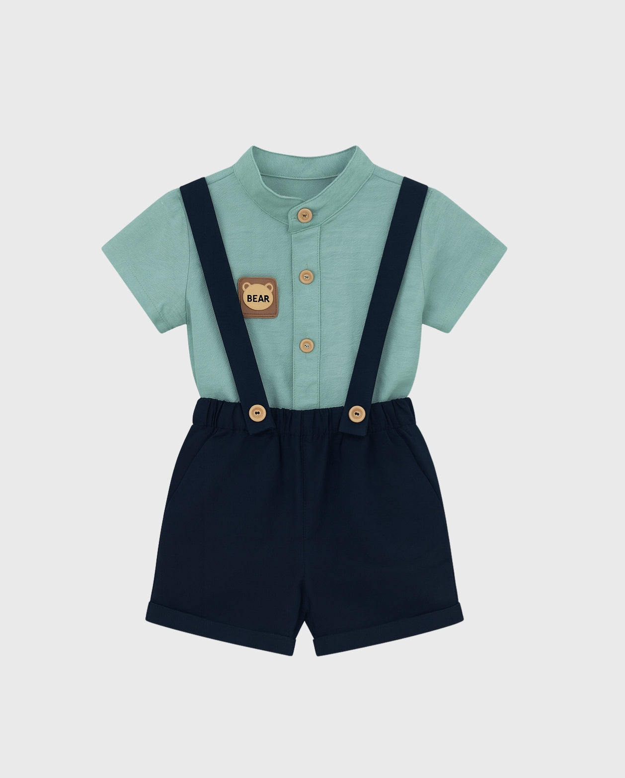 | Tipo de prenda | Conjunto infantil (bermuda + tirantes + parte superior) |