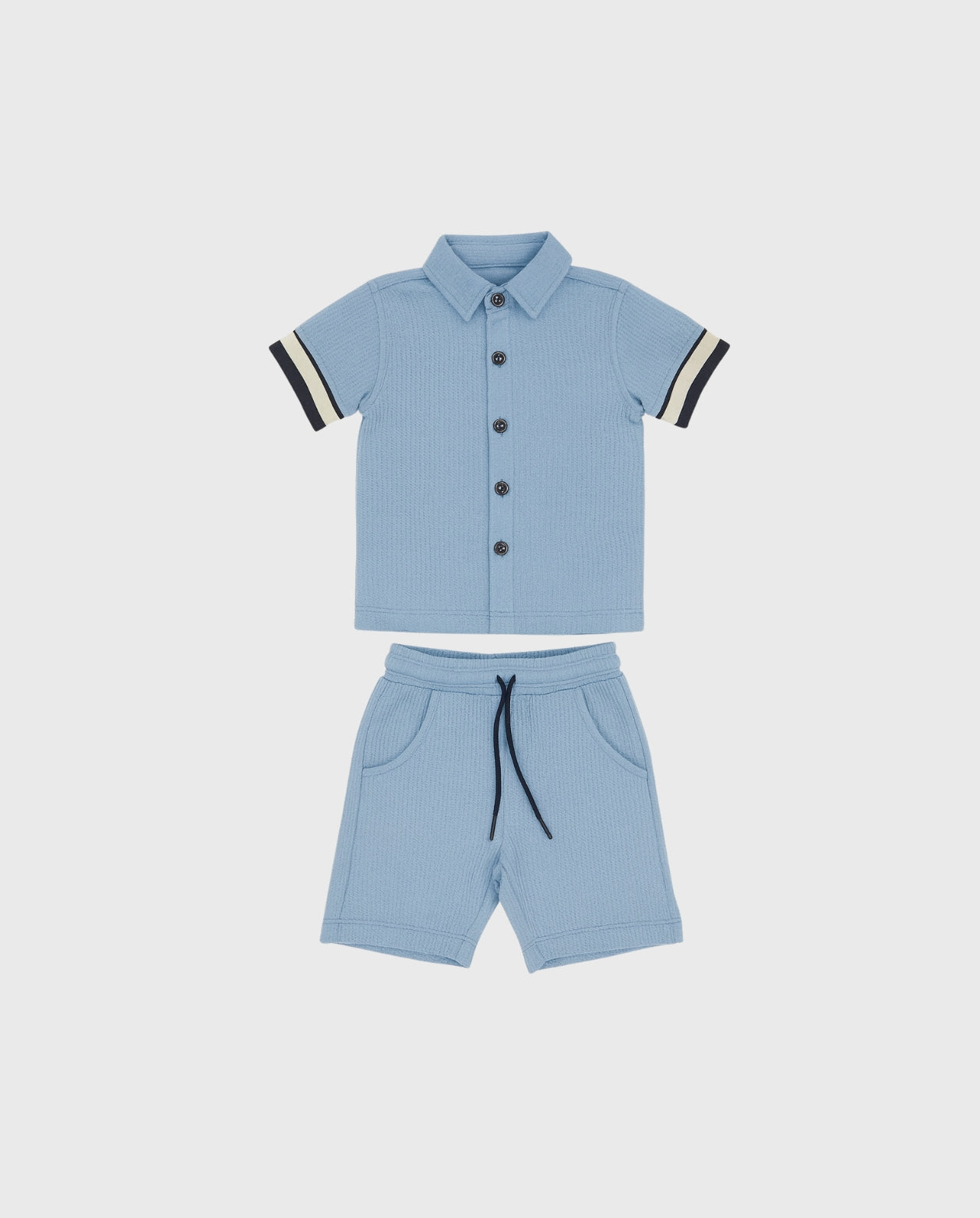 El Conjunto Bermuda Tela Galleta es ideal para los días cálidos gracias a su textura ligera y suave. La bermuda en tela galleta destaca por su frescura y comodidad, mientras que la parte superior combinada completa un look práctico, moderno y perfecto para uso diario, paseos o juegos. Su diseño versátil lo convierte en una opción imprescindible para el clóset infantil.