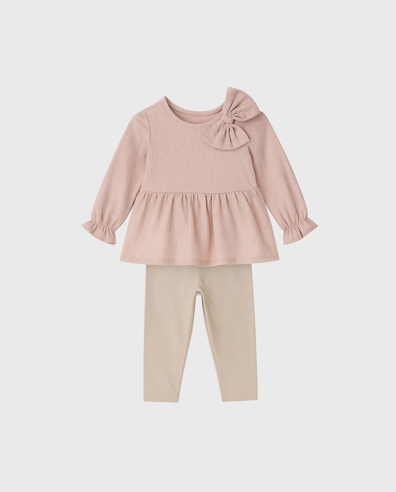 El Conjunto Leggings Brillo Moño combina comodidad, modernidad y un toque encantador para las niñas. Incluye leggings con efecto brillo que aportan estilo y personalidad, acompañados de una parte superior con detalle de moño, creando un conjunto tierno, cómodo y perfecto para el día a día o salidas especiales. Su material suave y flexible permite total libertad de movimiento.