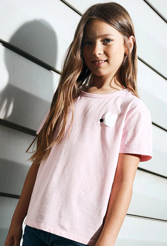 El Conjunto Pantalón Cargo Flor Boboli combina comodidad y estilo en una prenda perfecta para el día a día de las más pequeñas. Incluye una camiseta rosa de manga corta con detalle de flor bordada y un pantalón tipo cargo negro, ideal para un look moderno y versátil.