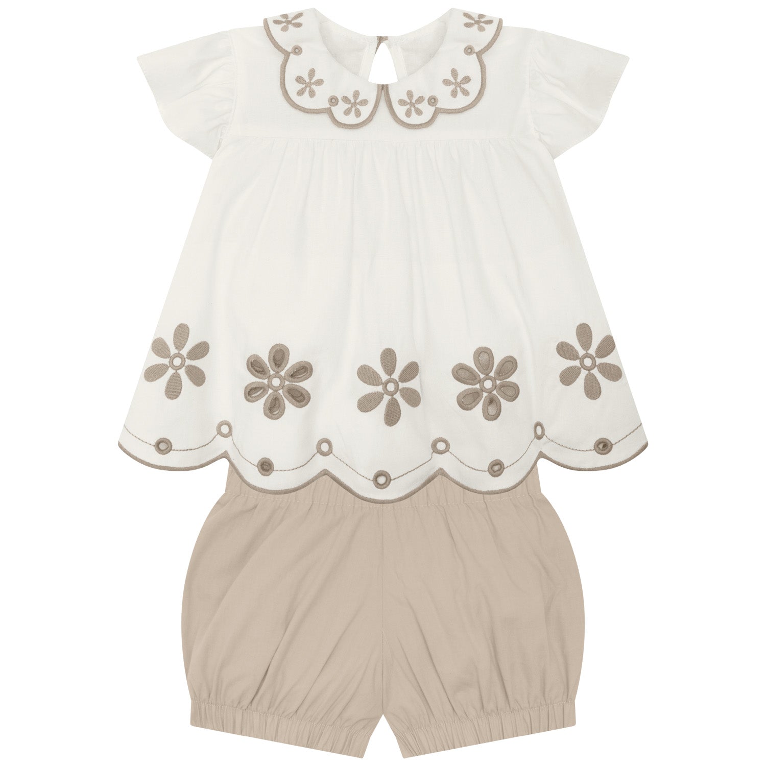 El Conjunto Short Detalles Bordados Beige ofrece un look suave, moderno y delicado gracias a su diseño en tonos neutros y sus bordados finos que aportan un toque especial. Fabricado en materiales frescos y cómodos, es ideal para acompañar a los más pequeños en días cálidos o actividades cotidianas con estilo y libertad de movimiento.