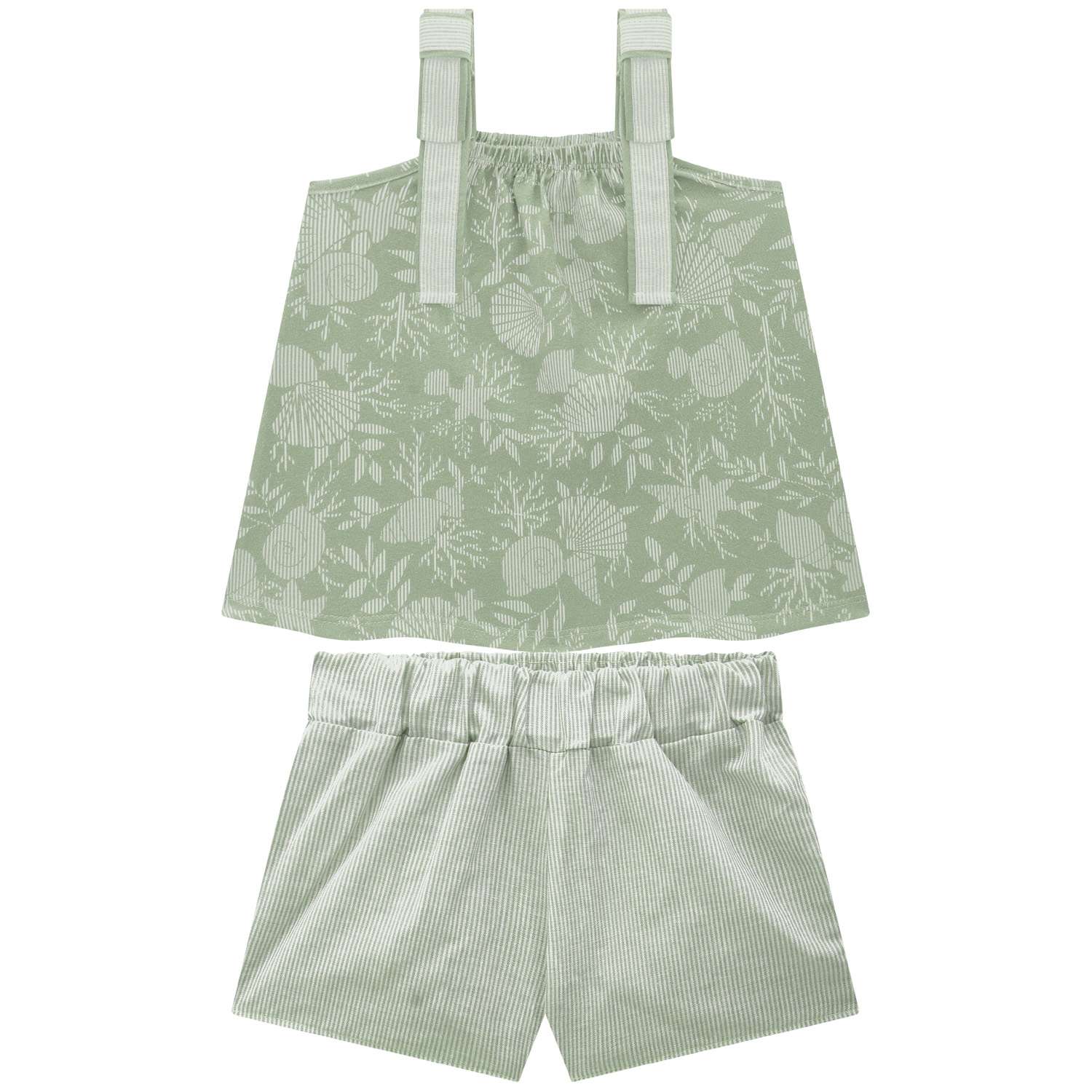 | Incluye | Short estampado océano + camiseta/blusa a rayas verdes |
