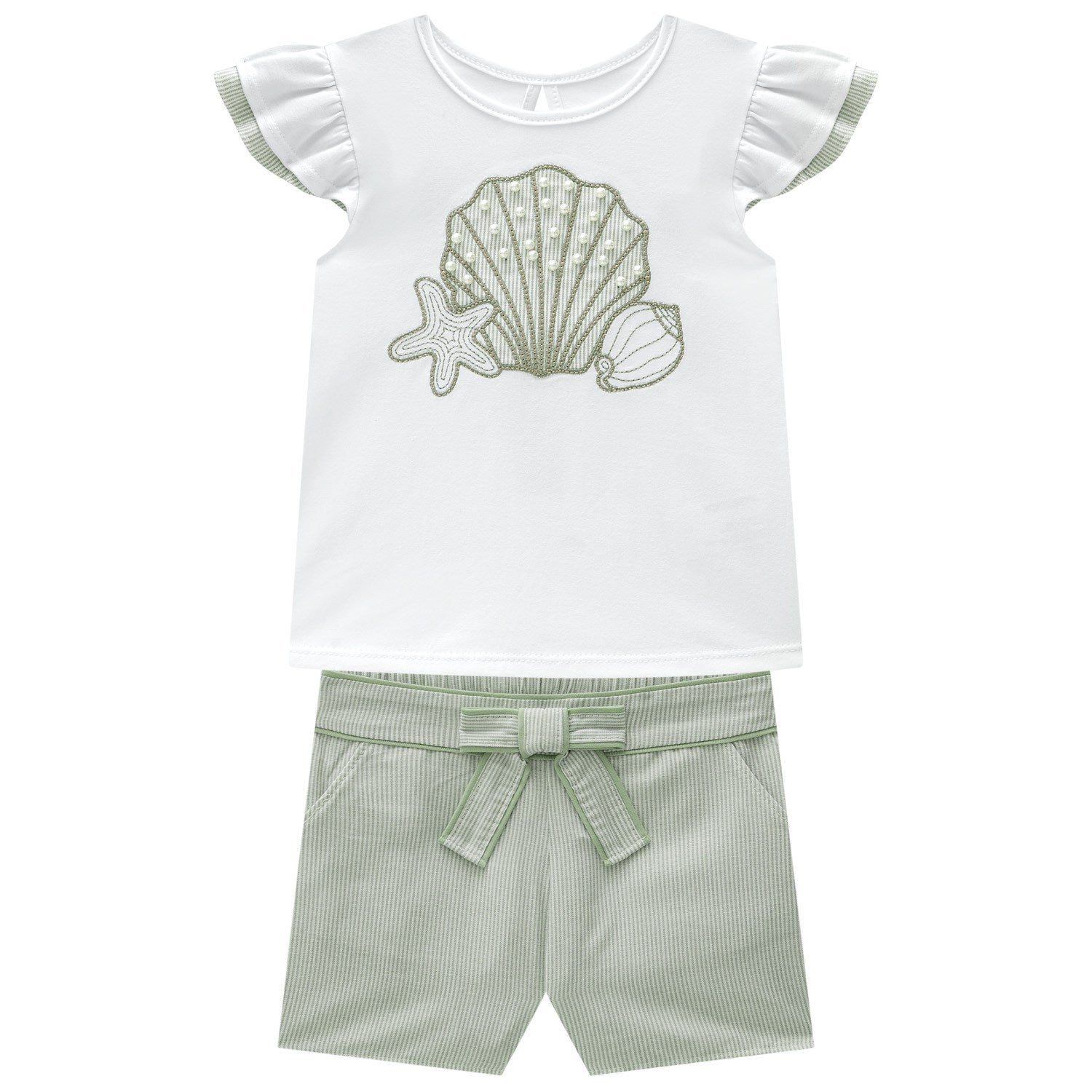 | Incluye | Short a rayas + camiseta/blusa con detalle de pera verde |