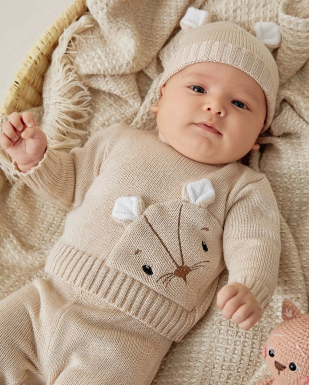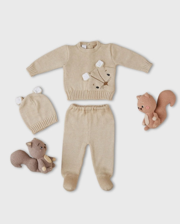 Mantén a tu bebé cálido y adorable con nuestro encantador Conjunto Tricot Ardilla Beige. Este set incluye un saco suave, pantalones cómodos y un gorro con orejas que añade un toque juguetón. Diseñado para los primeros meses de vida, es perfecto para mantener el calor sin sacrificar el estilo. ¡No dejes pasar la oportunidad de vestir a tu pequeño con este conjunto único! ¡Compra ahora y haz que cada día sea especial!