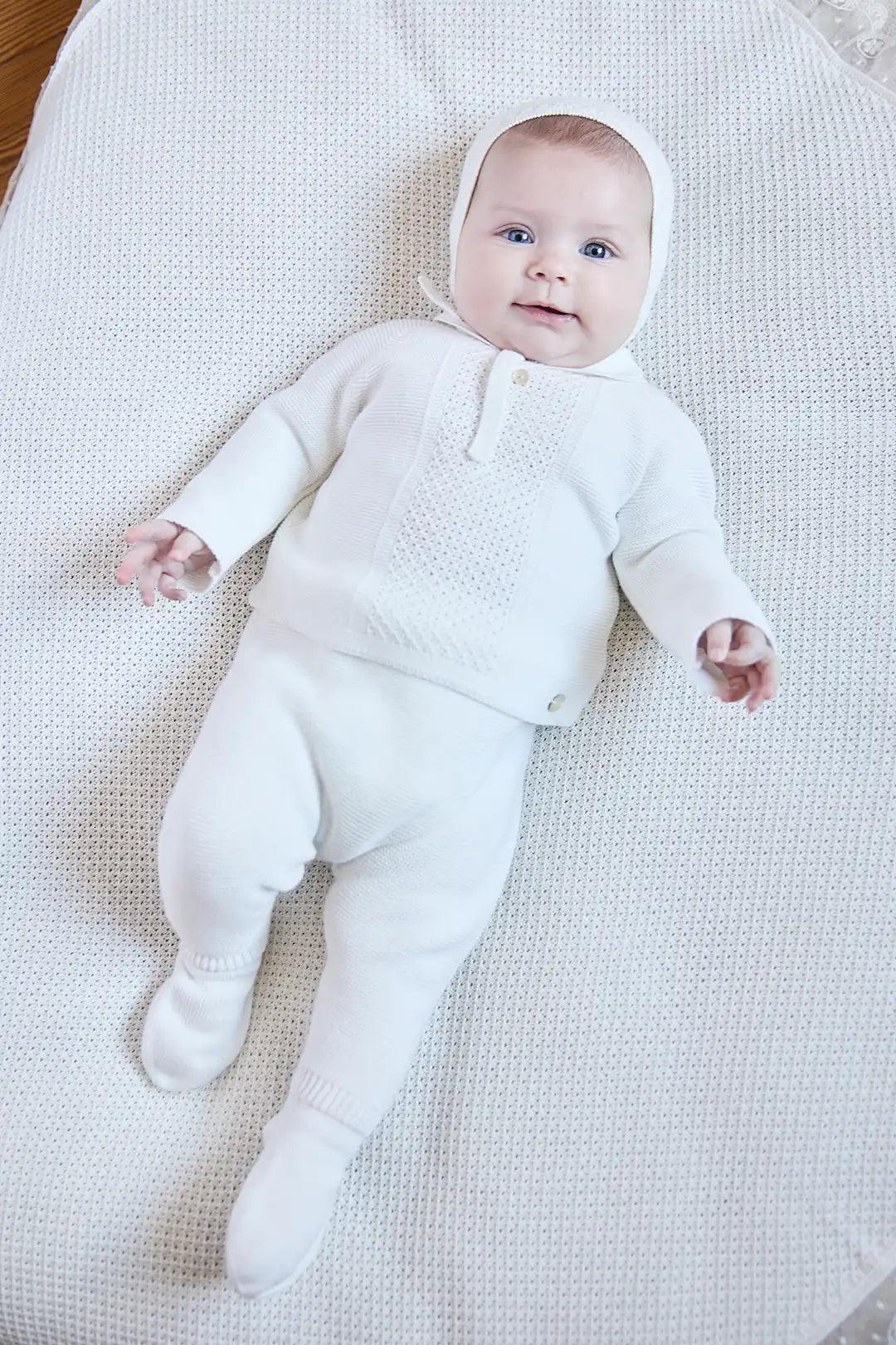 Conjunto de bebé niña de jubón y polaina de punto en rosa