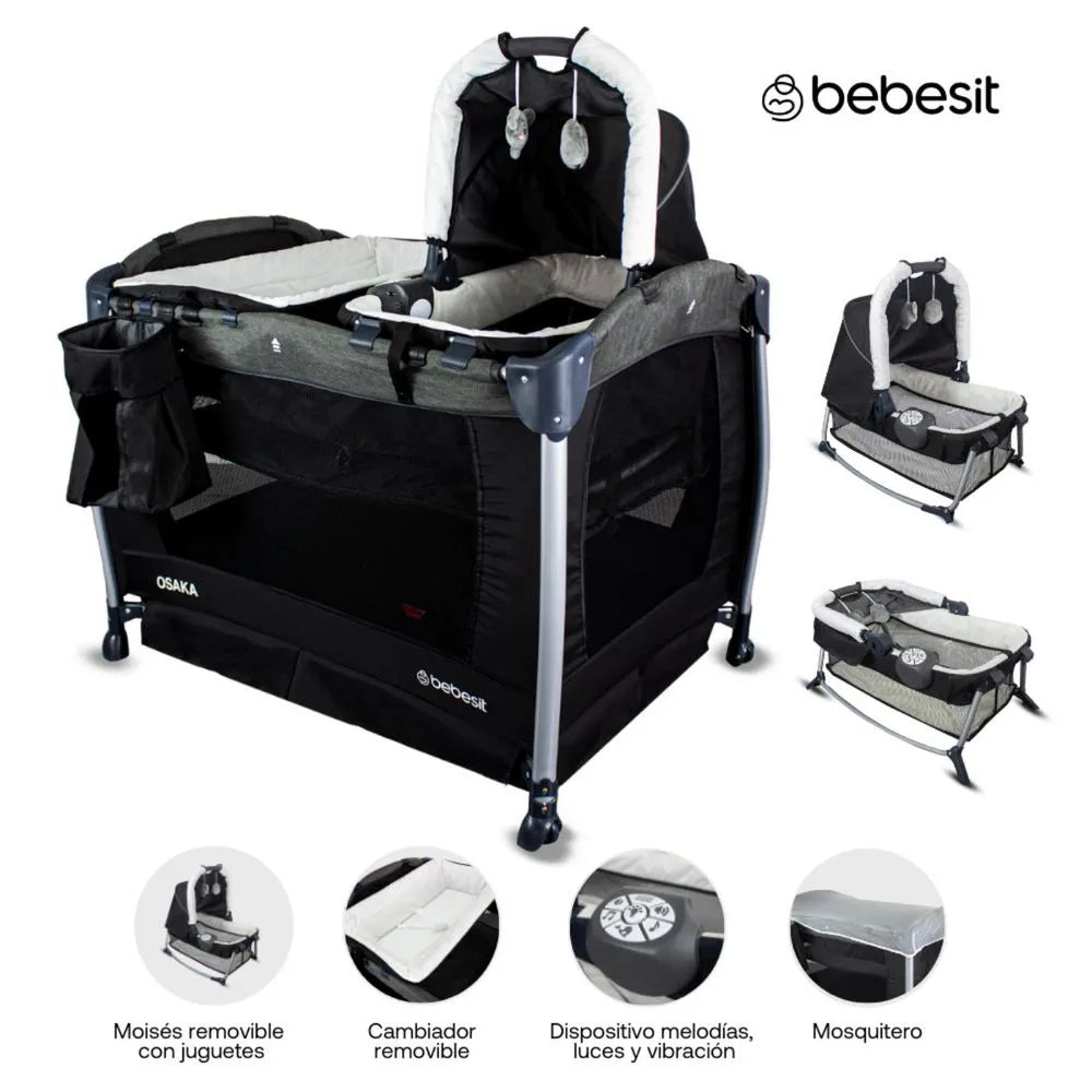 Ofrece a tu bebé un entorno seguro y versátil con la Cuna Corral con Moisés Pack Play Osaka Gris de Bebesit, ideal para uso en casa y en viajes gracias a su diseño portátil, cambiador desmontable, y estructura robusta; ¡añádela a tu carrito ahora y asegura el confort y la seguridad de tu pequeño en cualquier lugar!