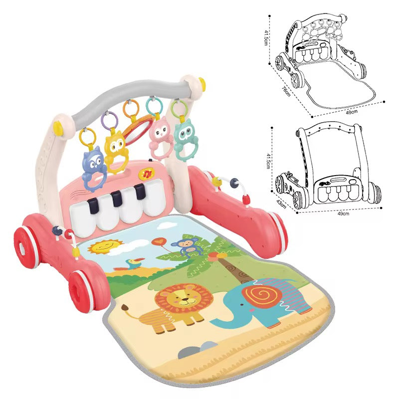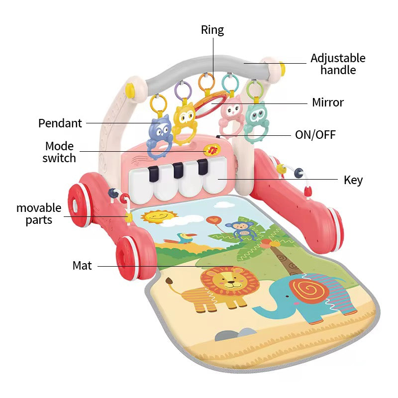 El Gimnasio Piano 2 en 1 Elefante Rosa es un centro de actividades diseñado para estimular el desarrollo motor, sensorial y cognitivo del bebé desde sus primeros meses. Incluye un tapete acolchado con estampados de animales, un arco con colgantes interactivos y un piano desmontable que puede usarse horizontalmente o como juguete independiente. Su diseño en tonos rosados lo hace ideal para crear un ambiente tierno y divertido.