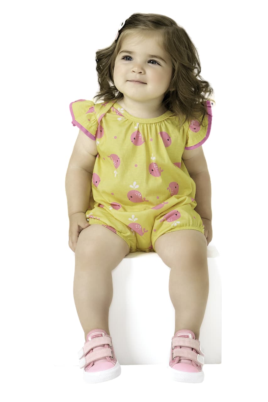 Viste a tu pequeña con ternura y color. Este mameluco amarillo con estampado de ballenas es tan cómodo como encantador, ideal para bebés de 6‑9 meses hasta 18‑24 meses.