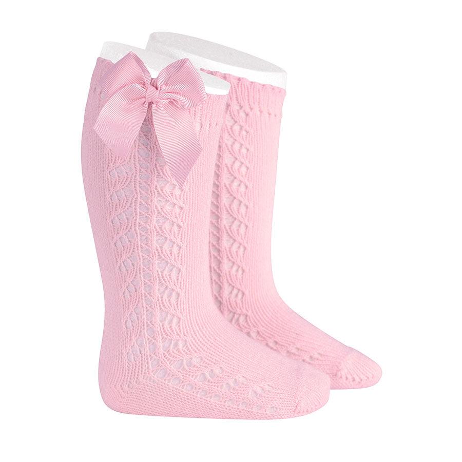 Calcetines altos para bebé fabricados en 100% algodón perlé con borlas a tono. Disponibles en talla 000 de (0-3 meses) a 1 año