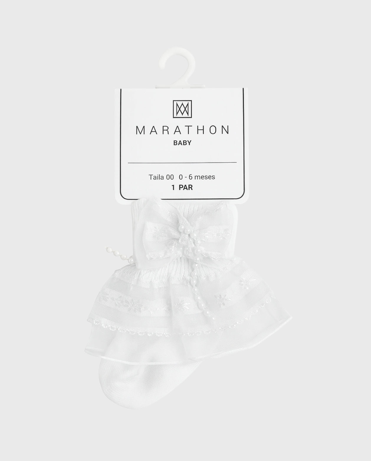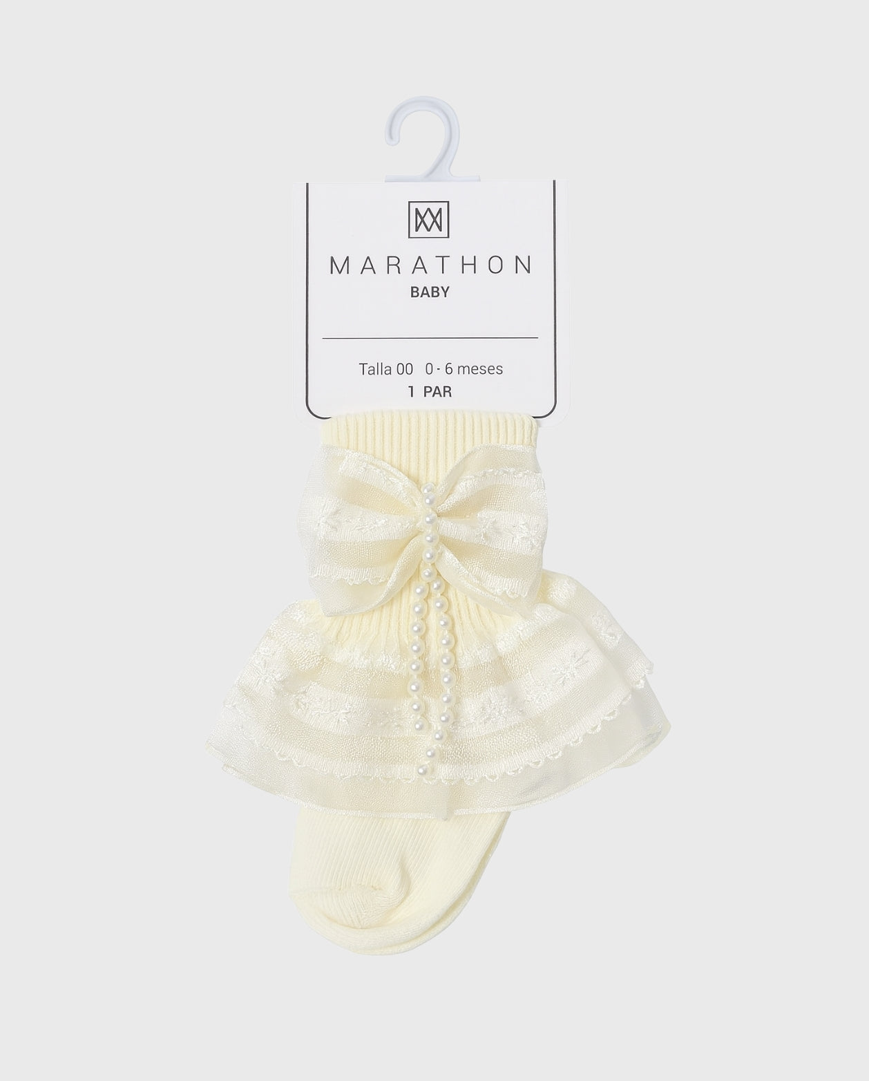 Las Medias Encaje y Perlas Moño son el accesorio perfecto para elevar cualquier look infantil con elegancia y delicadeza. Su diseño combina un encaje fino con detalles de perlas decorativas y un moño delicado, creando un estilo sofisticado ideal para ceremonias, presentaciones, fotos especiales o eventos familiares.