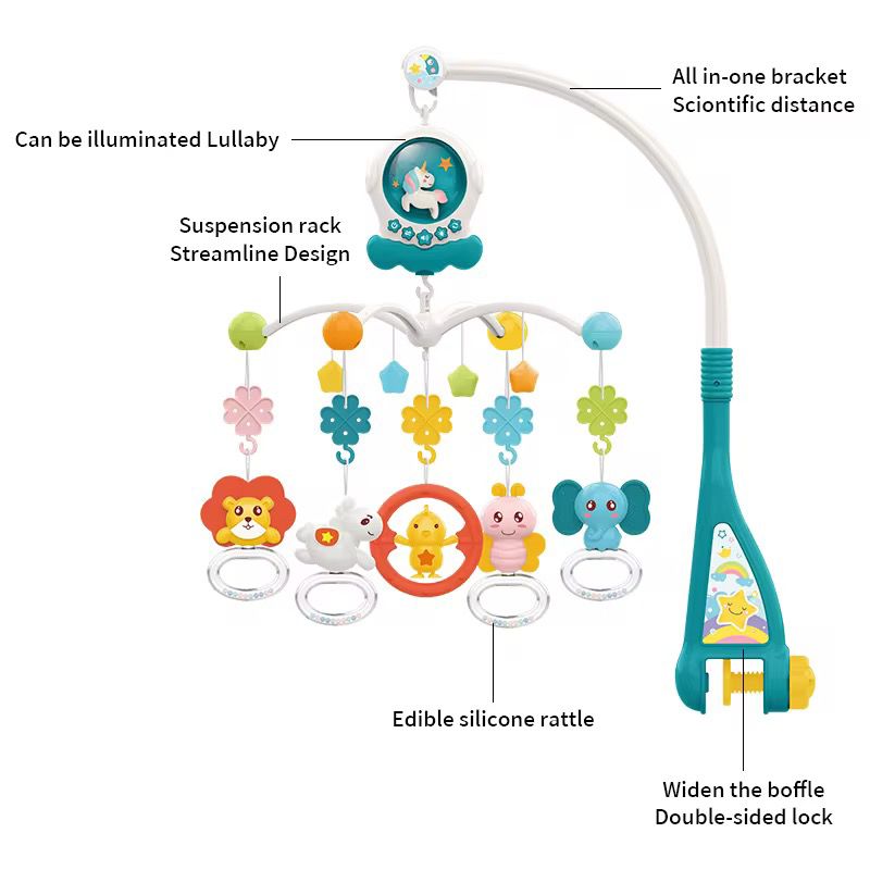 El Móvil Musical Animales Unicornio es perfecto para acompañar el descanso y el desarrollo sensorial de tu bebé. Con figuras colgantes de unicornios y animales, música relajante y movimiento giratorio, calma al pequeño mientras estimula su visión, audición y coordinación. ¡Añádelo al carrito y transforma la cuna en un espacio mágico de tranquilidad y diversión!