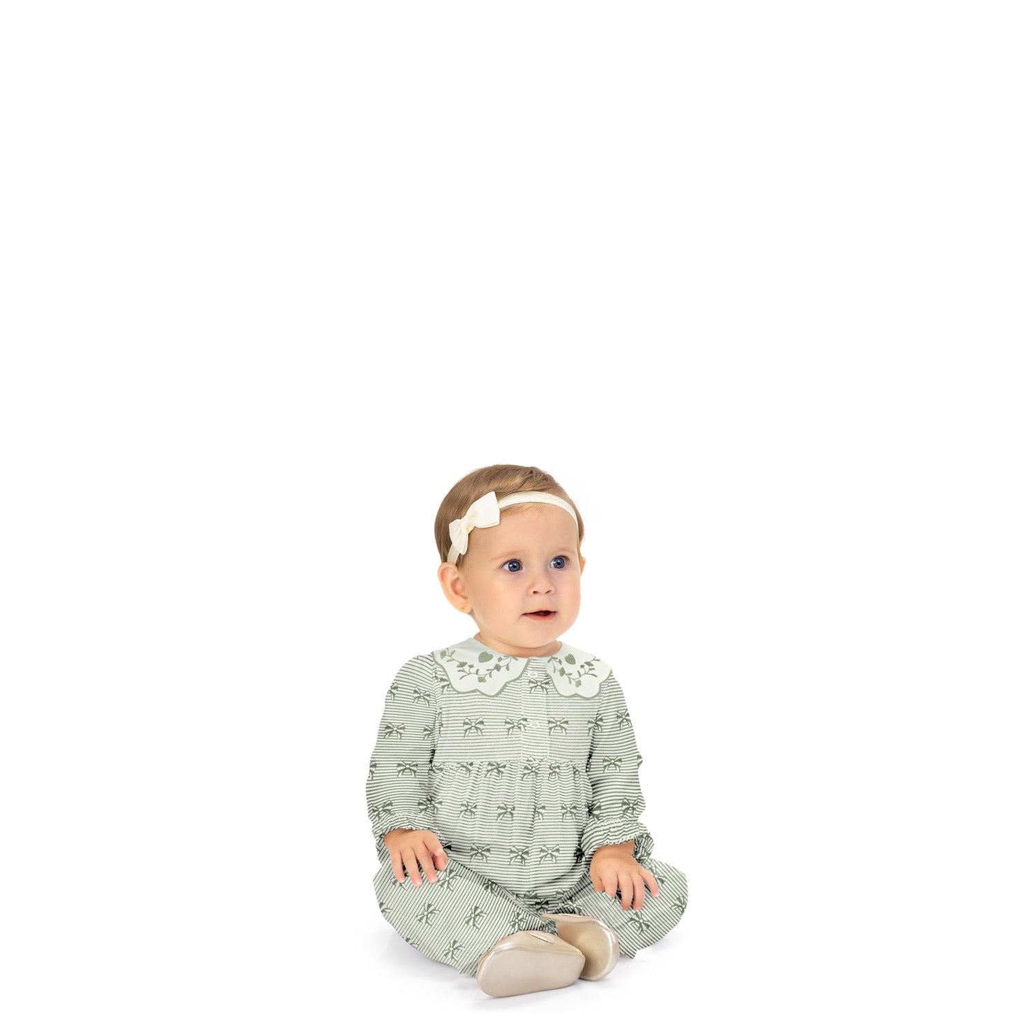 La Pijama Estampado Moños Rayas es perfecta para brindar comodidad y ternura durante la hora de dormir. Su diseño con moños estampados y rayas clásicas aporta un estilo delicado y encantador, mientras su tejido suave y ligero garantiza libertad de movimiento y confort durante toda la noche.