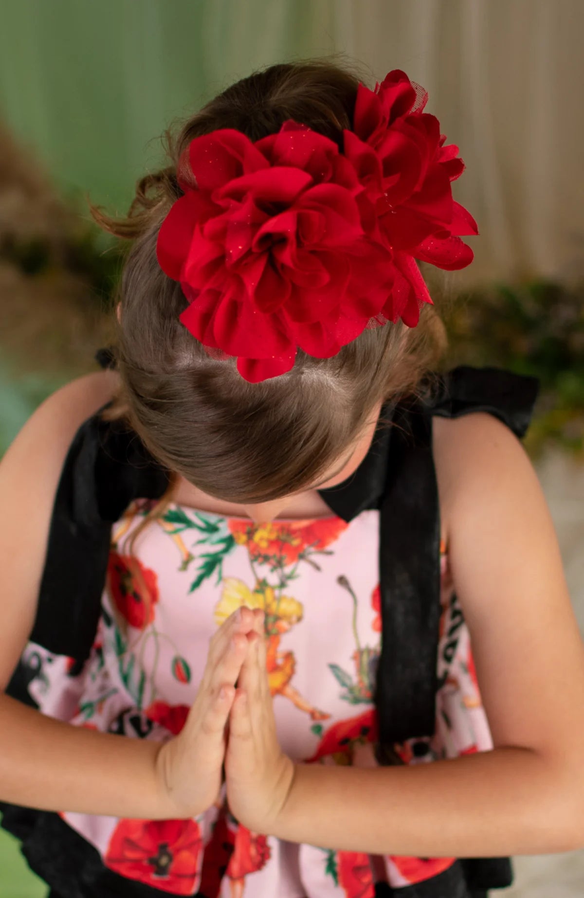 Añade un toque de alegría y encanto con estas encantadoras pinzas en forma de flores, hechas con tules brillantes y detalles dorados. Perfectas para complementar cualquier atuendo, estas pinzas aportan un toque divertido y elegante. Su tamaño es ideal para niñas a partir de los 3 años.