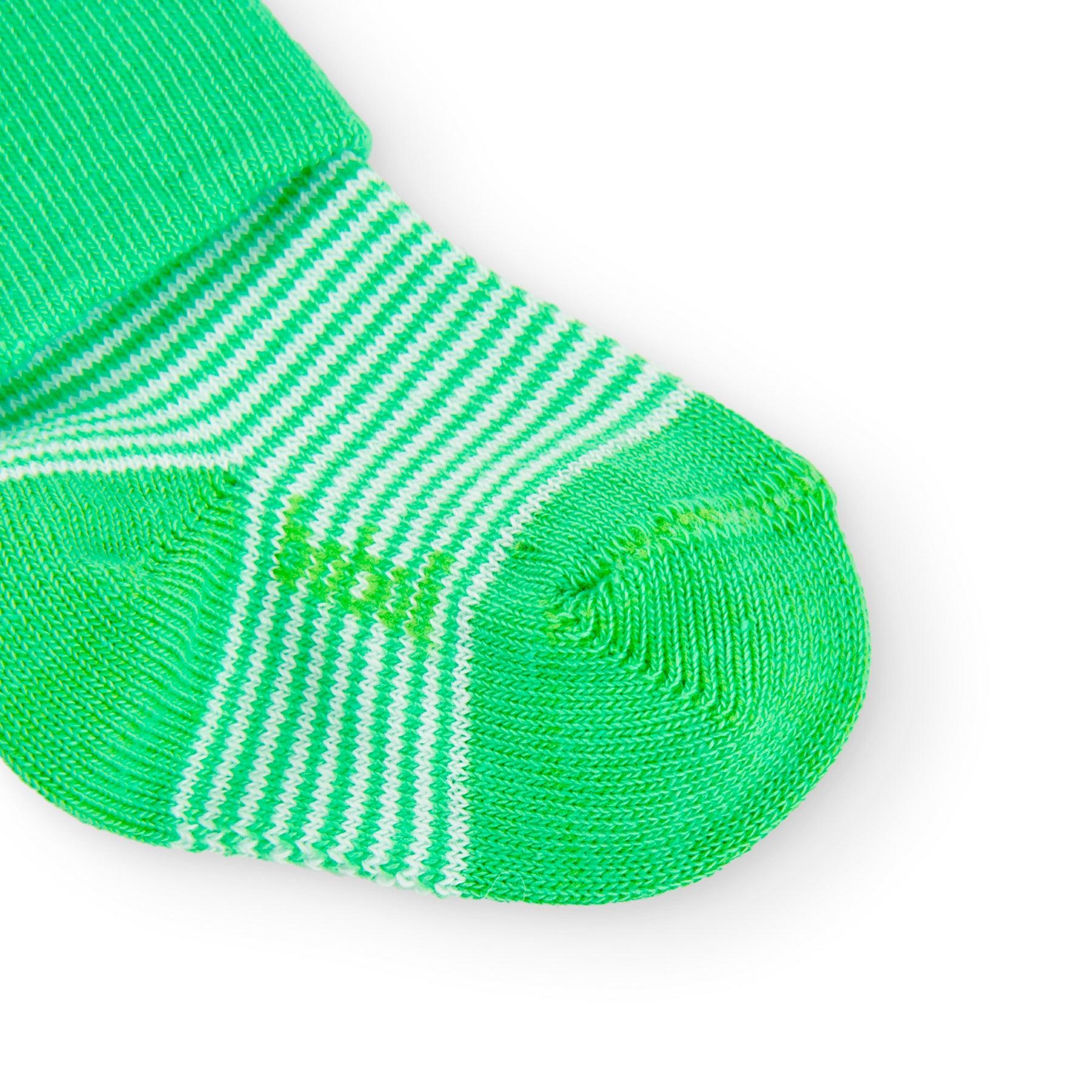 Pack de 2 pares de calcetines para bebé niño. Tallas desde la 16 hasta la 24. Un par es de color verde con rayas blancas y el...