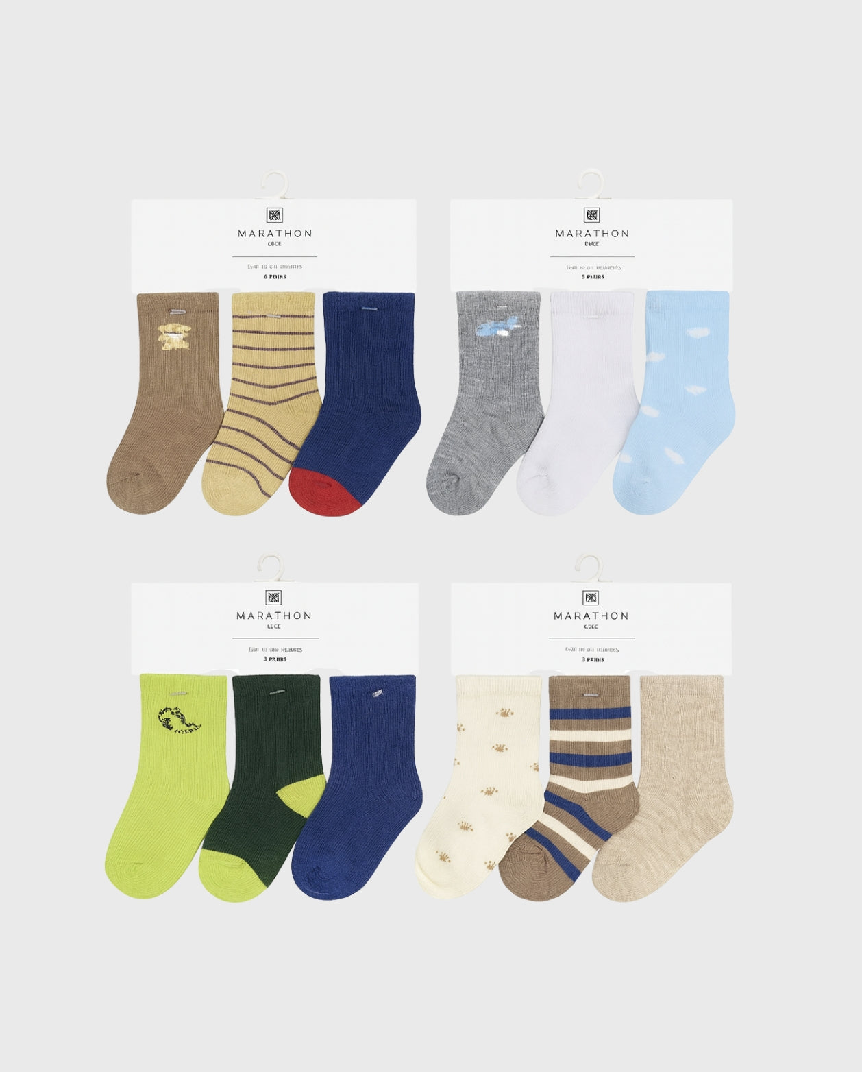 El Set 3 Pares de Medias Lisas Estampado Surtido Niño Saka es perfecto para acompañar a los pequeños en su día a día. Cada set incluye tres pares de medias surtidas, con diseños variados y divertidos que pueden incluir tonos lisos o estampados según disponibilidad.