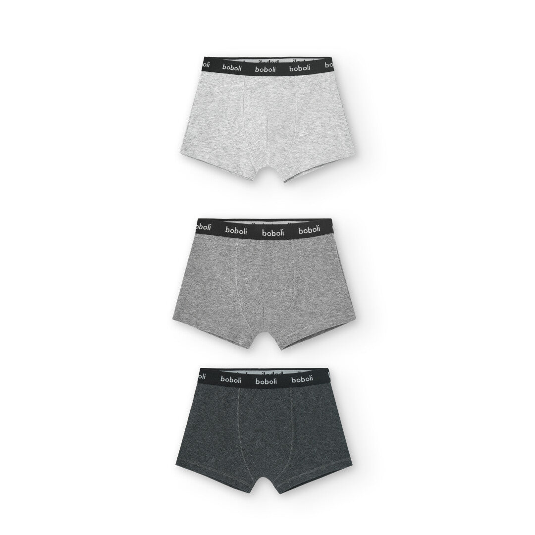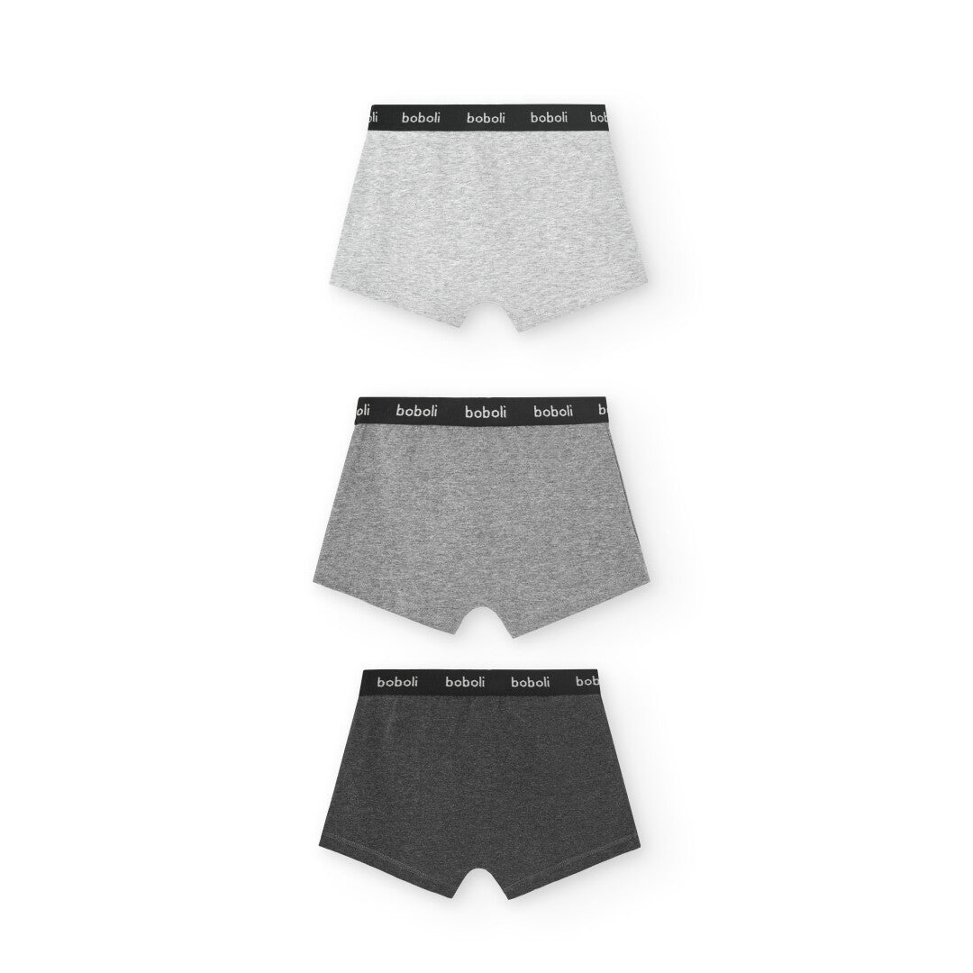Pack de 3 boxers para niño, confeccionados en tejido de punto suave y cómodo. Con tonos grises vigoré, estos boxers ofrecen un estilo moderno y versátil. Disponibles en tallas de 2 a 8 años, son ideales para el día a día, brindando comodidad y practicidad. Renueva tu ropa interior con este pack esencial.