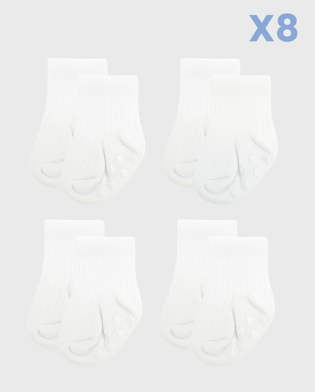 El Set de 4 medias antideslizantes para bebé en colores azul y blanco está pensado para brindar seguridad y comodidad durante los primeros movimientos del bebé. Cada par está confeccionado con tela suave y puntos de goma antideslizantes en la planta, ideales para pisos lisos.