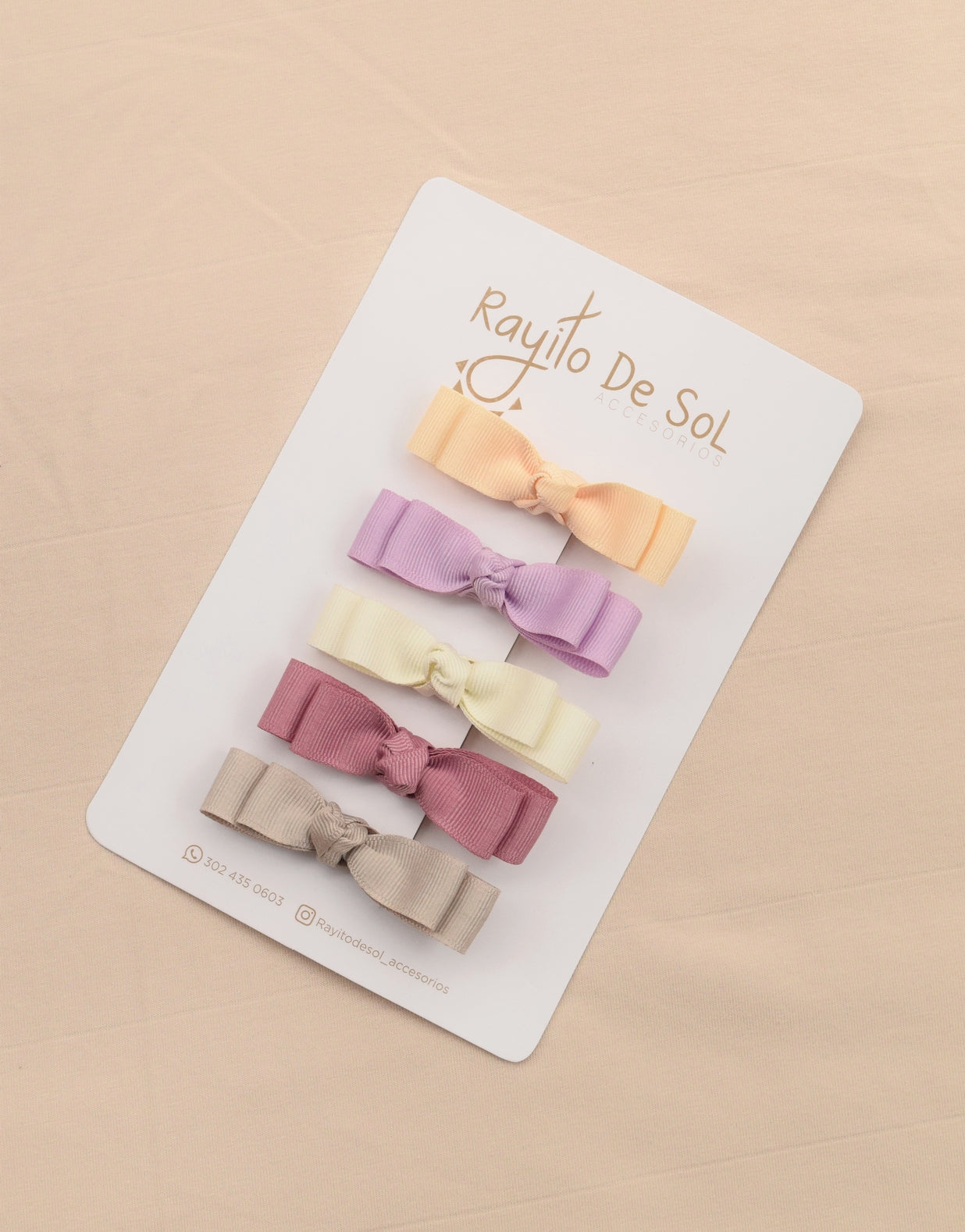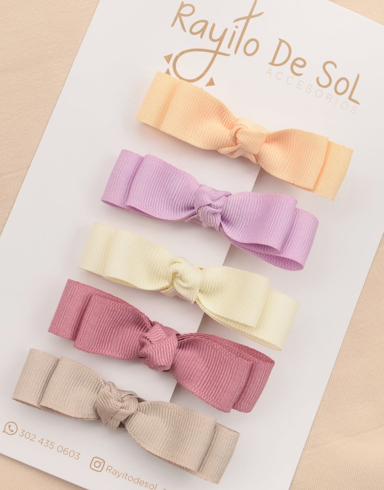 Incluye 5 pinzas con moño estilo Pia