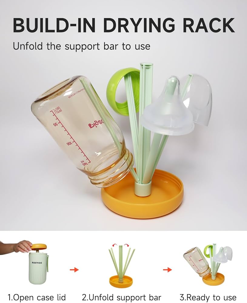 Mantén los teteros y accesorios de tu bebé impecables con este práctico set de limpieza. Diseñado para la comodidad de las mamás y papás en movimiento, incluye herramientas esenciales que garantizan una higiene rápida y efectiva, ideal para uso en casa o durante viajes.