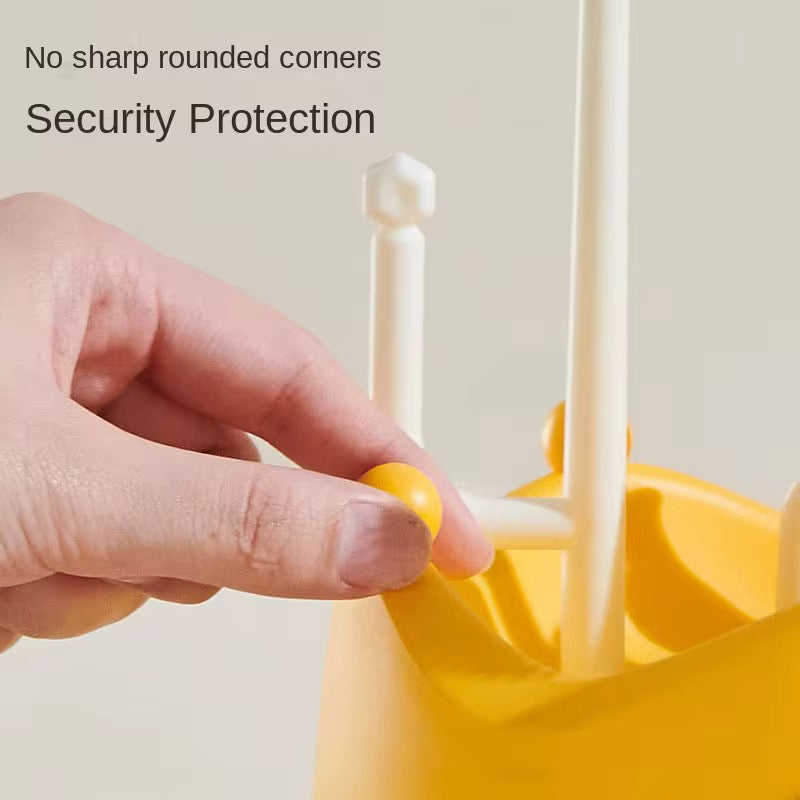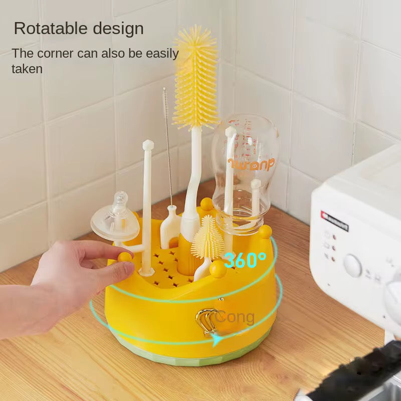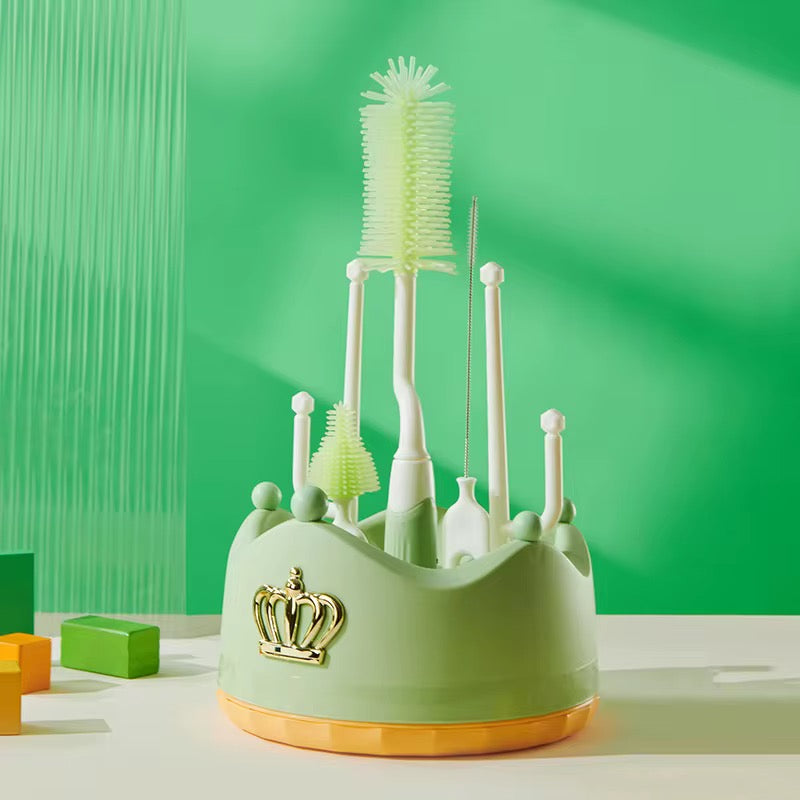 Este set es ideal para la limpieza y secado de teteros, biberones, y otros accesorios del bebé. Su diseño elegante con forma de corona y detalles dorados le añade un toque especial, perfecto para mantener la organización en la cocina o área de lactancia.