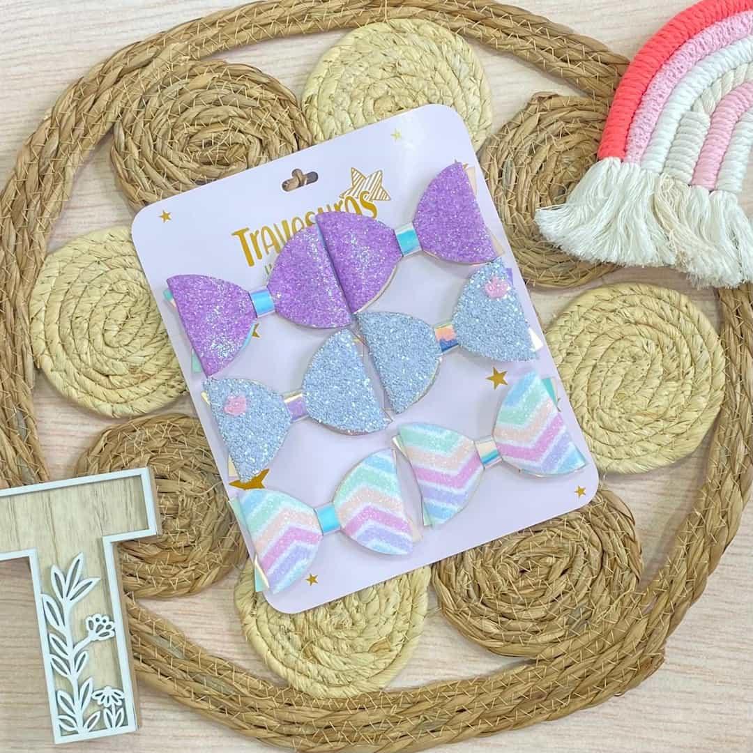 ¡Dale un toque especial a cada look! Este set de pinzas con moños es perfecto para complementar el estilo de tu pequeña. Con colores surtidos y un diseño encantador, son cómodas y seguras para sujetar el cabello delicado. ¡El accesorio ideal para cualquier ocasión!