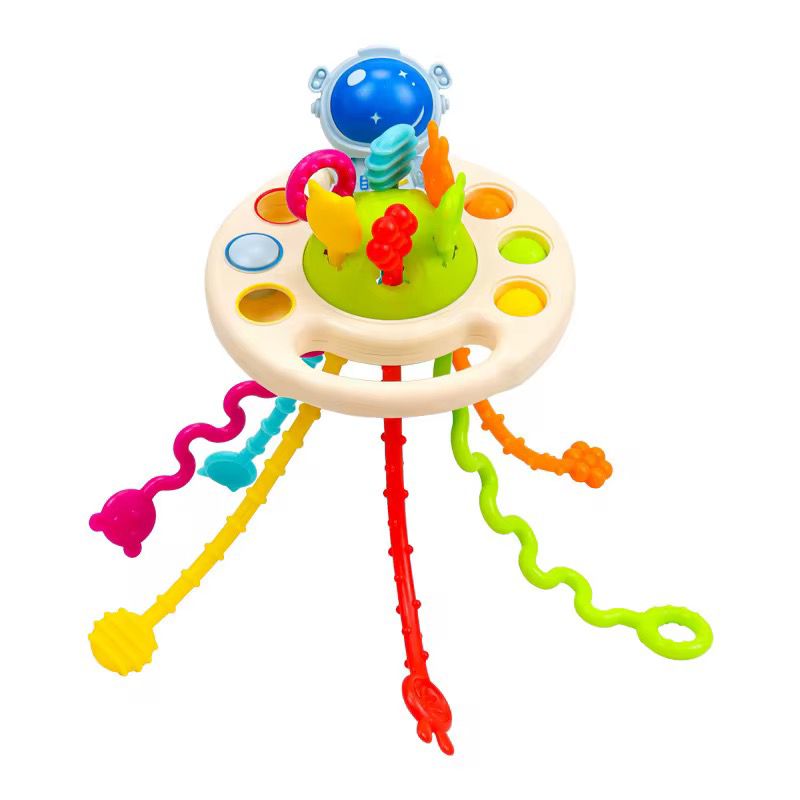 El Sonajero Rasca Encías Astronauta combina entretenimiento y alivio en un solo producto. Diseñado con texturas suaves de silicona para masajear las encías durante la dentición y un diseño divertido de astronauta, estimula los sentidos y la coordinación del bebé. ¡Añádelo al carrito y regálale a tu pequeño horas de juego seguro y relajante!