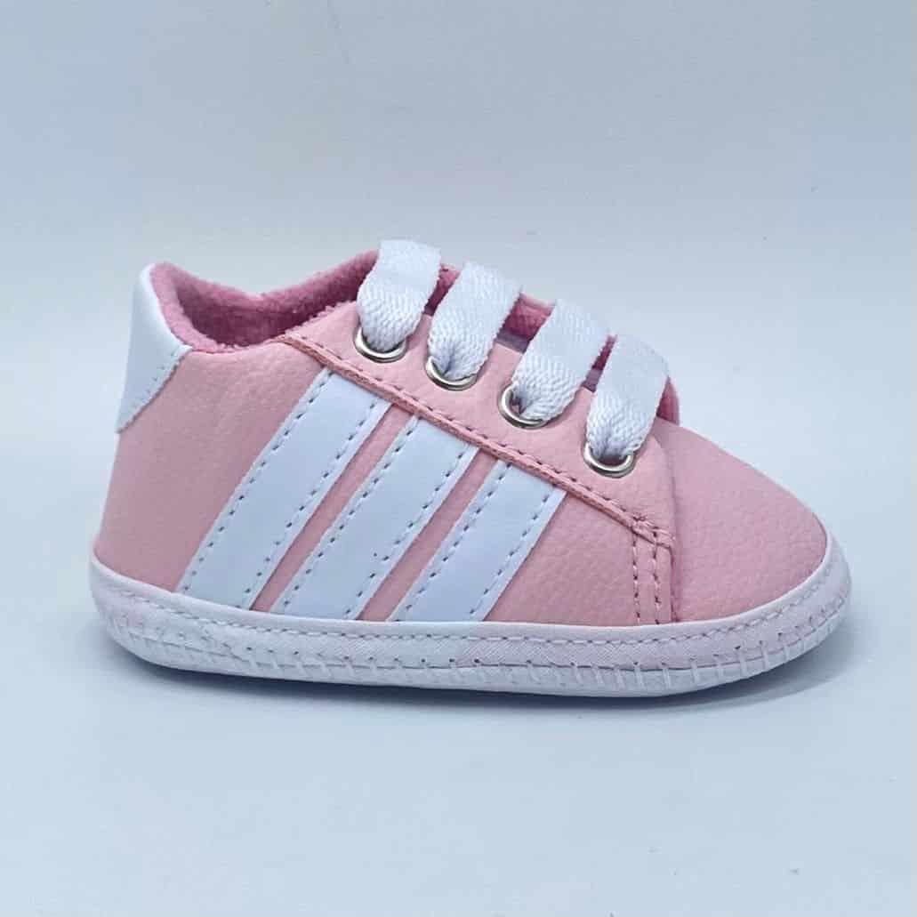 Tenis Sin Suela Rayas Rosa Zapatos de bebé sin suela rígida, hechos con tejido suave y flexible. Cuentan con un diseño de rayas en tonos rosas, perfectos para brindar comodidad en los primeros meses del bebé. Fáciles de poner gracias a su diseño, ideales para pre-caminadores o en la etapa de gateo. Su ligereza y materiales amigables con la piel hacen de estos tenis una opción cómoda y práctica.