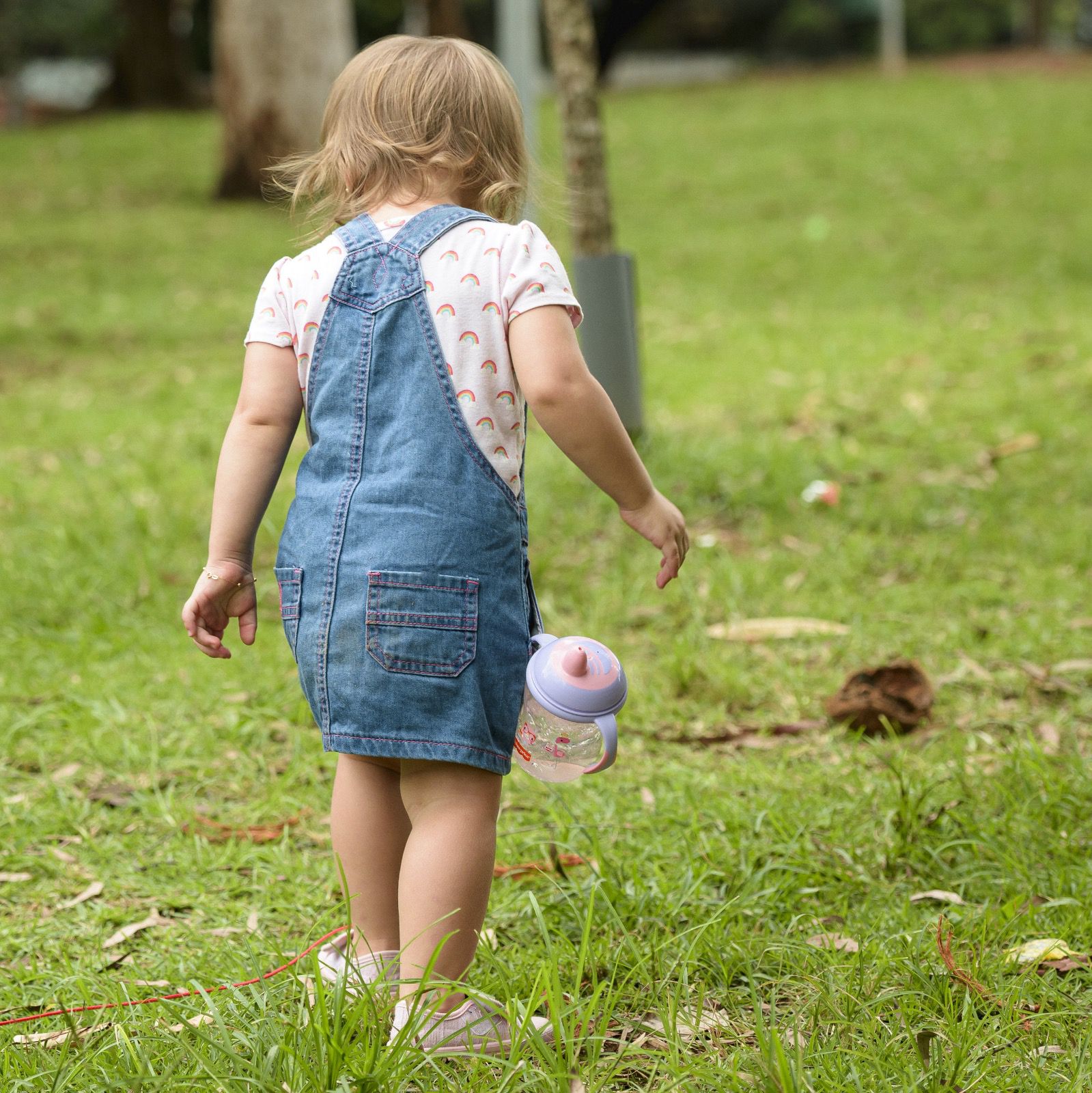 Acompaña a tu bebé en su etapa de transición con este hermoso vaso de entrenamiento First Moments. Su diseño en color rosa con detalles de glitter es ideal para enseñar a los pequeños a beber por sí mismos.