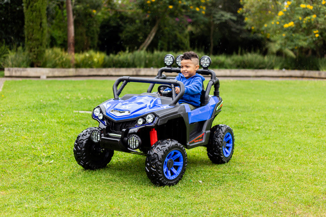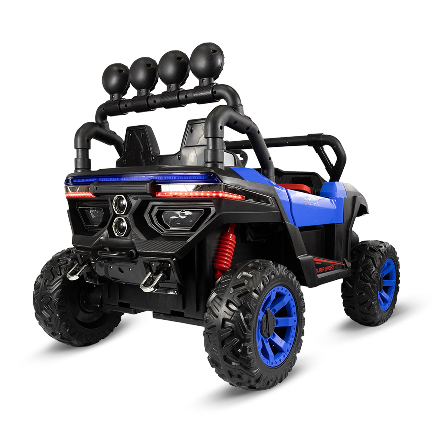Con un diseño robusto y deportivo, está equipado con luces LED, tarjeta de sonido con Bluetooth, MP3, USB y un control remoto parental que ofrece total seguridad en el manejo. Las puertas funcionales y el amplio espacio interior lo convierten en el vehículo perfecto para los pequeños aventureros.