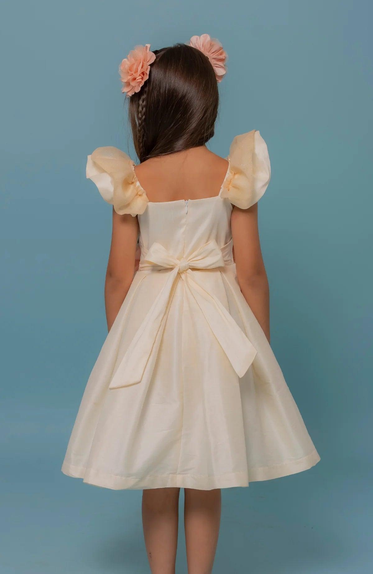 Tu hija será la más elegante del evento con el Vestido para Bebita Alma. Es un vestido en suaves tonos beige, perfecto para las fiestas más importantes de la vida de tu niña. El corte sofisticado y el diseño moderno harán de tu niña la más linda de la celebración. El acabado de flores de tela en la cintura adornan con un encanto romántico. ¡Hazla brillar!